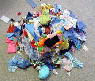 Und hier kann man hervorragend die kleinen Reißverschluss-Reste, die immer übrigbleiben, wenn man RV vom Meter verwendet, verarbeiten!!! Und auch Stoffreste kann man hier sinnvoll einsetzen, der Durchmesser der zugeschnittenen Teile ist ca. 5 Inch, was ca. 13 cm entspricht.